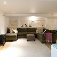 - Living room space with 11 ft. ceilings and over 400 sq. ft.